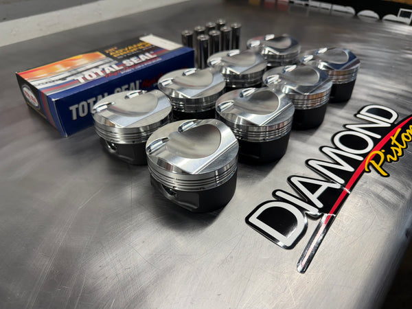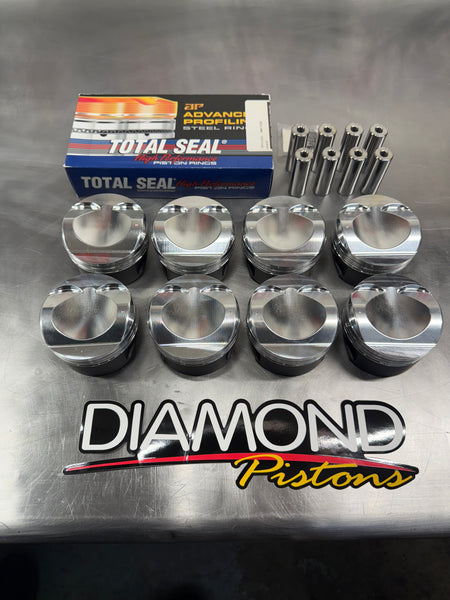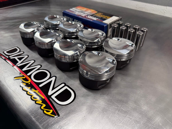 - Qty 8: Diamond Pistons 12.5:1 Compression, coated skirts, bank specific offset pin design.